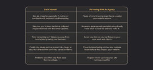 Whilst doing it yourself is an option, partnering with a website agency means there’s one less thing for you to worry about. Not only does this give you peace of mind, it also means issues are solved quickly.