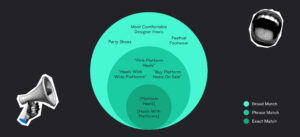 For example, if our platform heel retailer wants to expand their reach but make sure they’re still only showing for platform heel queries, they might keep the same keywords as above, but put them quote marks. This would mean they might show for search queries like “Pink Platform Heels” or “Buy Platform Heels on Sale.”