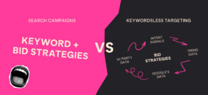Keywordless campaigns, like Performance Max, use Google’s AI, automated bidding, and data signals to target users across Search, Shopping, Display and YouTube, without inputting keywords. Instead of advertisers inputting keywords they want to target, they’ll use various data points to signal to Google who their ideal user is.
